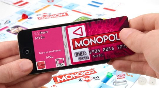 http://estaticos04.cache.el-mundo.net/blogs/elmundo/applicate/imagenes_posts/2012/12/10/27604_540x299.jpg. En sus más de 100 años de historia (o 75 si contamos el lanzamiento de la primera versión oficial) el juego Monopoly ha tomado cientos de formas. Ediciones locales y mundiales, diseños basados en famosas películas como La Guerra de las Galaxias o El Señor de los Anillos, juegos afiliados en cadenas de restaurantes y televisión... A estas versiones físicas hay que sumar también las versiones virtuales para consola, ordenador y por supuesto tabletas y teléfonos. Pero Monopoly Zapped es diferente. Propone combinar ambas gracias a la tableta o el teléfono, un Monopoly físico y real que se juega con la ayuda de una aplicación específica para dispositivos iOS y unas tarjetas de crédito "inteligentes" que sustituyen el dinero de los jugadores. La app es gratuita y puede descargarse en cualquier terminal (sólo hace falta uno en cada partida). Esta aplicación no contiene tablero, dados o fichas. Esos elementos son físicos, los de "toda la vida". Su función es llevar la cuenta de los turnos, mostrar animaciones de las diferentes jugadas y facilitar las transferencias de dinero entre las trajetas de los jugadores. Las tarjetas funcionan por contacto con la pantalla del teléfono o la tableta. No utilizan tecnología NFC ni reuqien de un accesorio especial en el teléfono o la tableta. En su lugar están preparadas para que las pantallas capacitivas reconozcan a qué jugador pertenecen de acuerdo a la separación de dos puntos de contacto en la parte inferior. La app es la encargada también de repartir las famosas cartas de Suerte y Caja de Comunidad, pero con sorpresa. Ahora algunas de las cartas llevan a los jugadores a competir entre sí en minijuegos táctiles que se juegan en la pantalla del teléfono y que dan un tono más divertido y competitivo al clásico Monopoly. Por razones de espacio resulta mucho más fácil jugar a estos minijuegos en la gran superficie de un iPad o un iPad mini pero en la pantalla de un IPhone o un iPod Touch también añade una bienvenida dosis de competitividad que premia a los jugadores más rápidos y no sólo a los linces de las finanzas. . //Gracias por tu visita//
