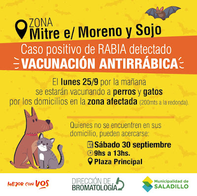 #SALADILLO | VACUNACIÓN ANTIRRÁBICA HOY LUNES 25 DE SEPTIEMBRE